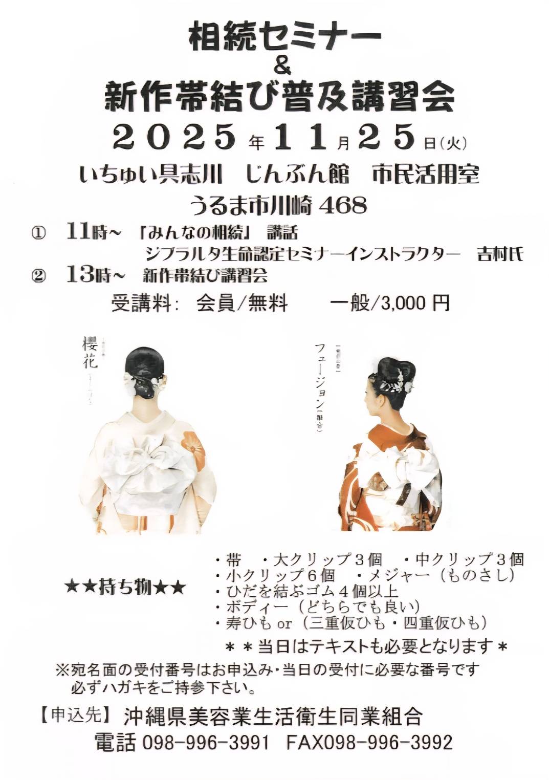 2025/11/25に「相続セミナーと新作帯結び講習会」がございます