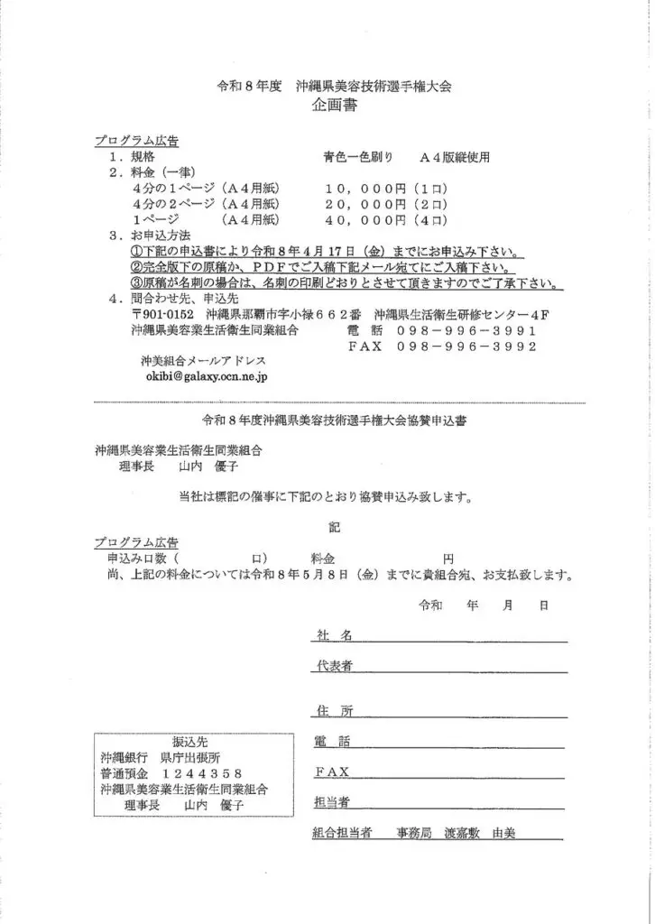 また、コンクール開催に伴い、プログラム広告協賛のご協力をお願いしたいと思っております。