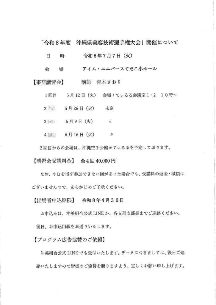 出場を希望されるかたは、沖美公式LINE又は電話か各支部長へご連絡ください。