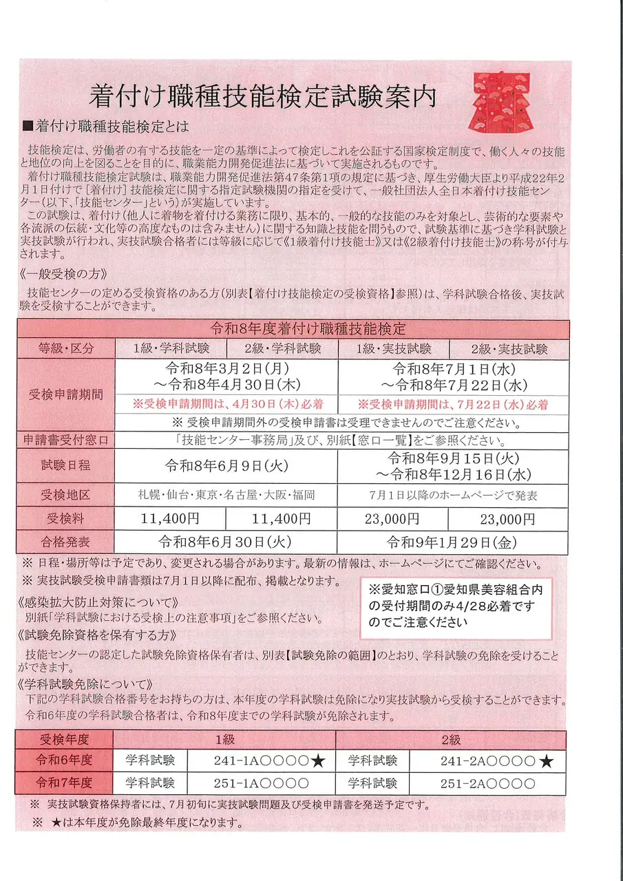 今年度も着付けの学科・実技検定が開催されます。
